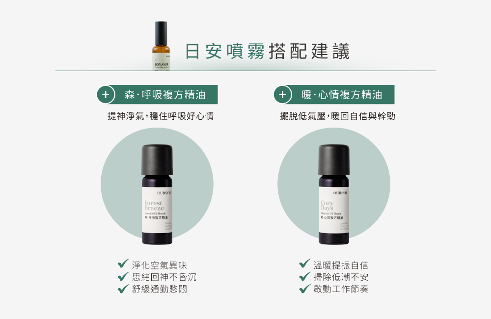 ■日安噴霧含迷迭香、檸檬,撥開清晨腦霧,喚醒專注,活力迎接每一天。